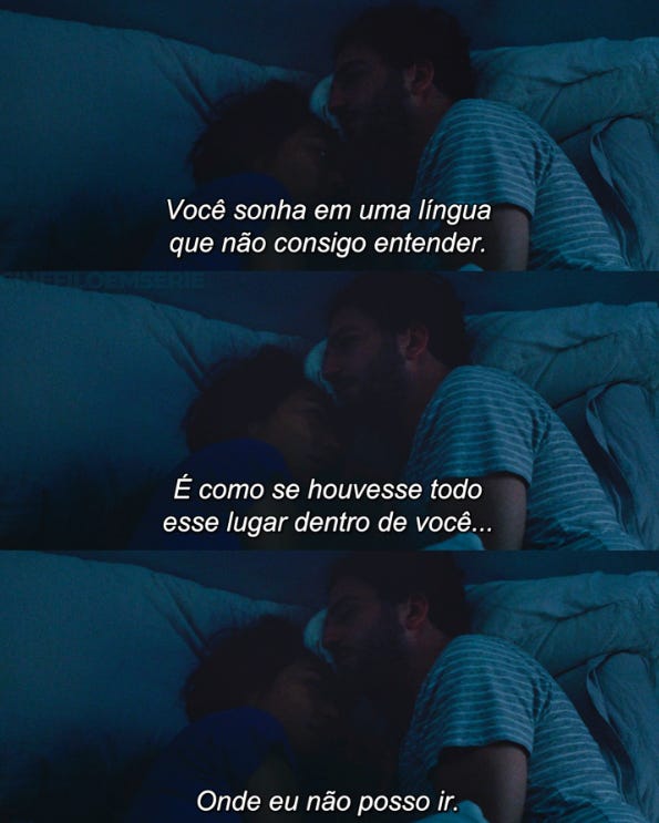 A língua assume o caráter de cadeado, de baú de desejos e saudade, de uma olhada torta no espelho, de um encontro com as outras versões. A língua não lhe é possível porque lá é o seu último refúgio. E se John não consegue acessá-la, quem consegue?